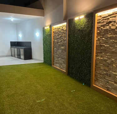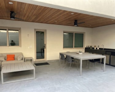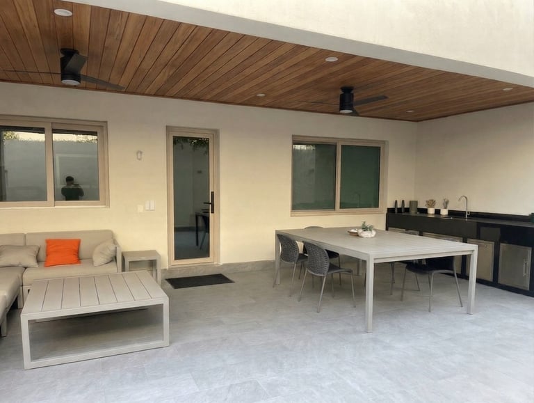 Creamos el escenario perfecto para tus reuniones. Nos especializamos en el diseño y ejecución de áreas sociales exteriores, integrando barras de asador personalizadas con acabados de alta resistencia y cubiertas funcionales. Complementamos tu espacio con techos de deck sintético que aportan calidez y elegancia sin mantenimiento, logrando una transición perfecta entre el confort interior y la libertad del exterior.